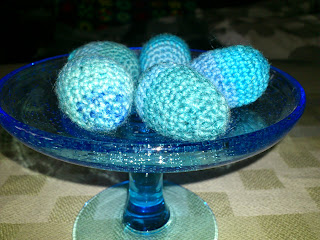 Håller på att förbereda påsken, virkar påskägg och tänkte få fatet fullt och kanske några till.